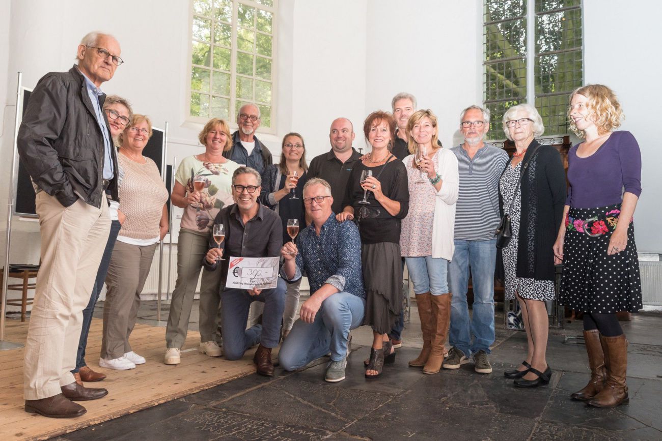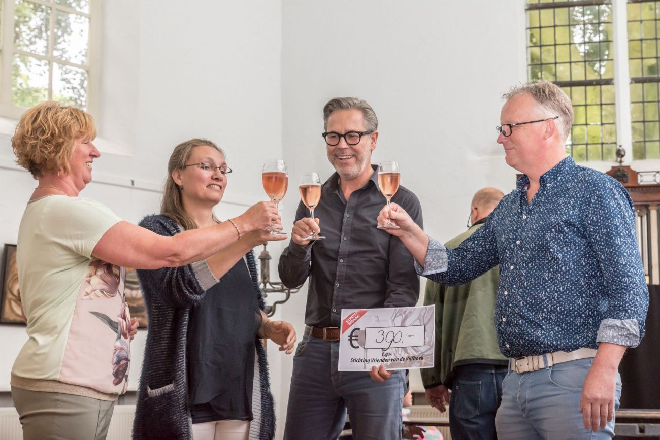 De eerste editie van de expositie Kunst met Smaak vond afgelopen weekend (24-26 juni) plaats in de Witte Kerk en de Hutkoffer in Heiloo. Regionale en landelijke kunstenaars met uiteenlopende disciplines (kunstwerken van glas, brons en ijzer, fotografie, schilderijen en tekeningen) exposeerden hun werken. De reacties van het publiek waren goed en vooral op de zaterdag was de opkomst voor een eerste editie niet verkeerd. De Ontdekking verzorgde een wijnschenkerij, bierschenkerij en lekkere hapjes. Namens de organisatie (Lucia Admiraal en René Groot) mochten Renate Bowra en Willem de Haas (van de vriendenstichting) een cheque van 390,- euro in ontvangst nemen. Deze prachtige bijdrage kwam uit de opbrengst van Kunst met Smaak. De Vrienden van de Vijfhoek zijn aan het sparen voor een tweede loungeplek in de nieuwe buitenruimte van De Vijfhoek en zijn erg blij met de publiciteit en bijdrage van Kunst met Smaak. Nogmaals heel erg bedankt!