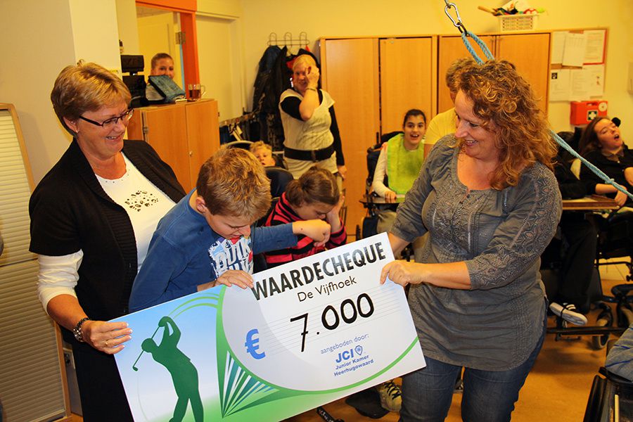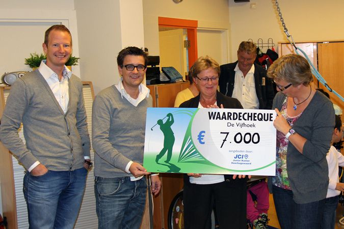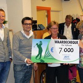 De opbrengst van deze dag werd 9 oktober door Christiaan Gude, Dennis Engelsma en Niels Engel overhandigd aan Nel Jonkerman-Leber, teamleider van de Vijfhoek. Bij het zien van het bedrag, kon ze haar verbazing niet onderdrukken: “Dát is nou een hole-in-one!”.