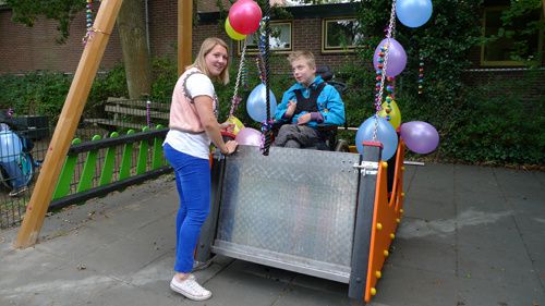 Vrijdag 4 oktober nam Ryan Graaman, een van de kinderen op orthopedagogisch dagcentrum De Vijfhoek, de nieuwe rolstoelschommel feestelijk in gebruik. Als eerste kon hij genieten van het heerlijke schommelgevoel dat door bijdragen van de Junior Kamer Heerhugowaard, Rotary Bergen, Jan Blekemolen en Ina van den Berg mogelijk is gemaakt. Het project rolstoelschommel werd opgepakt door de Stichting Vrienden van De Vijfhoek om de kinderen van de Vijfhoek weer veilig te laten schommelen, nadat de oude schommel het begeven had.