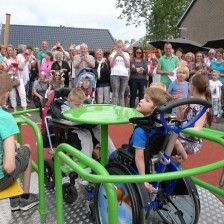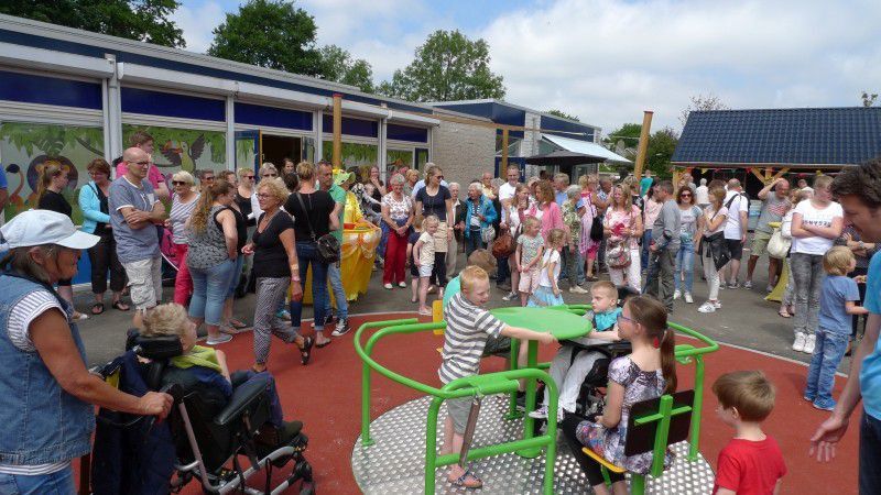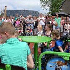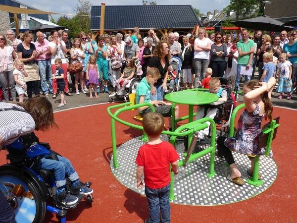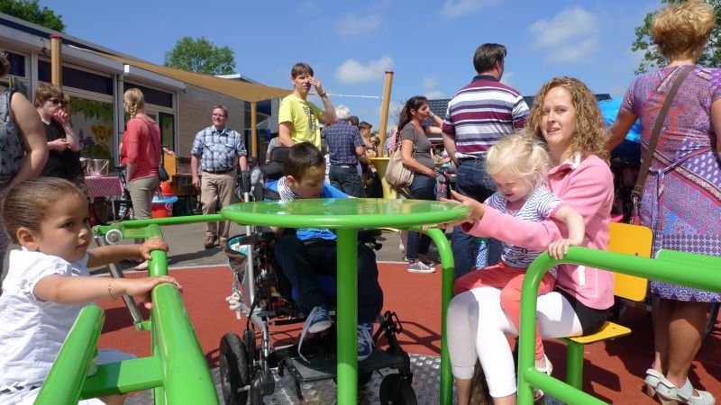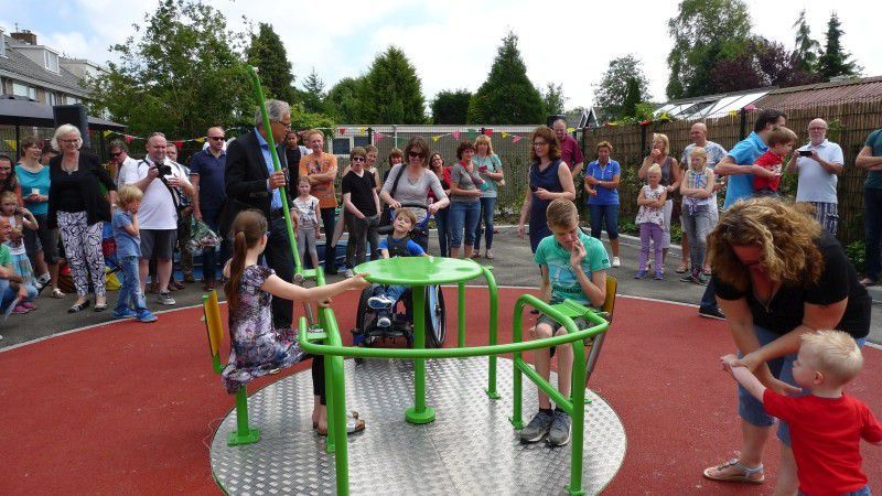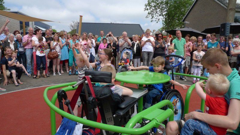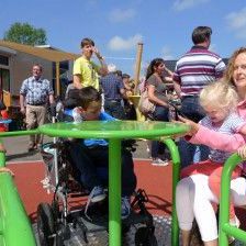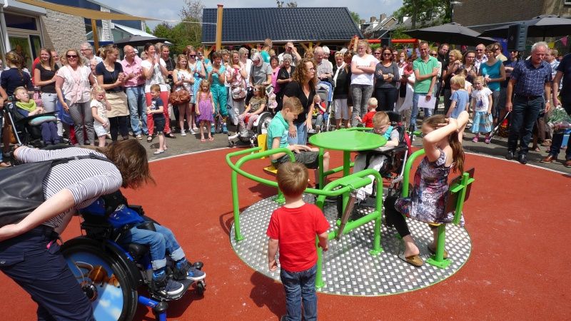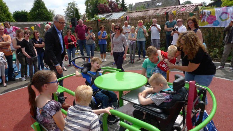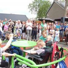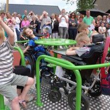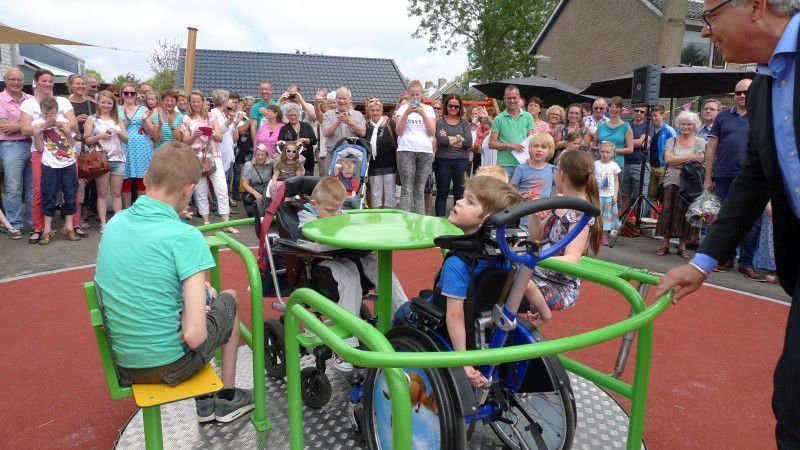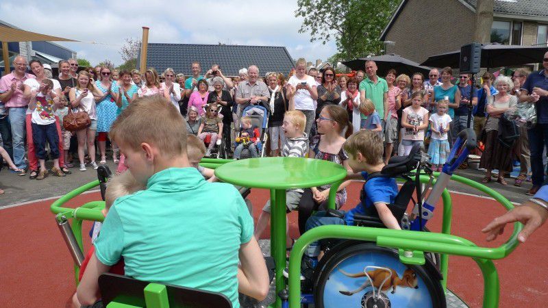 Samen onthulden zij de draaimolen die daarna blij in gebruik werd genomen. In de draaimolen is plaats voor vier kinderen, waarvan twee plekken voor een rolstoel. De feestelijke opening werd door ruim 250 belangstellenden bijgewoond.