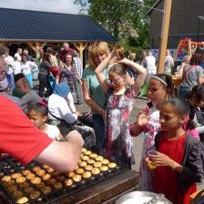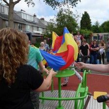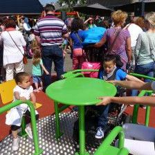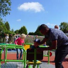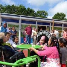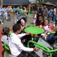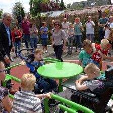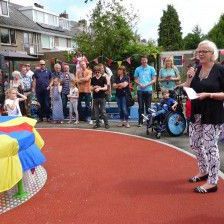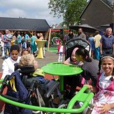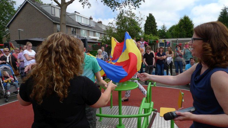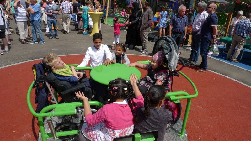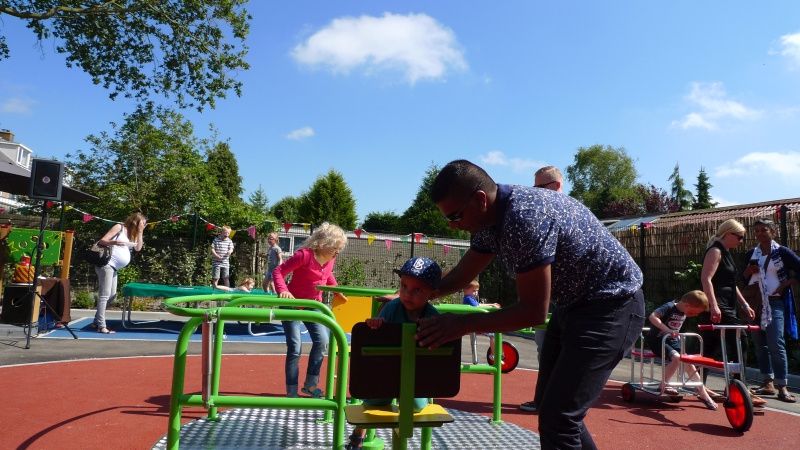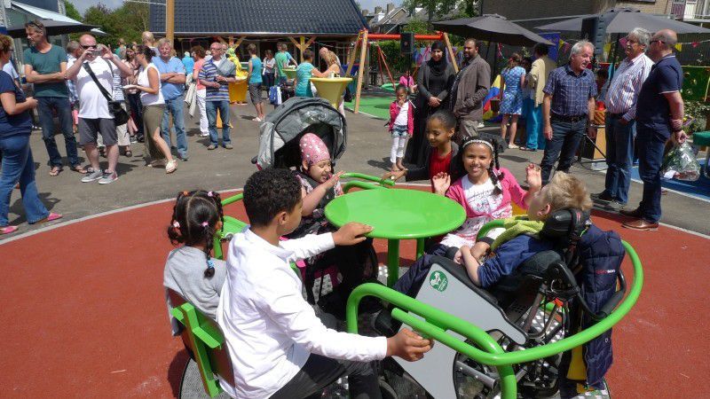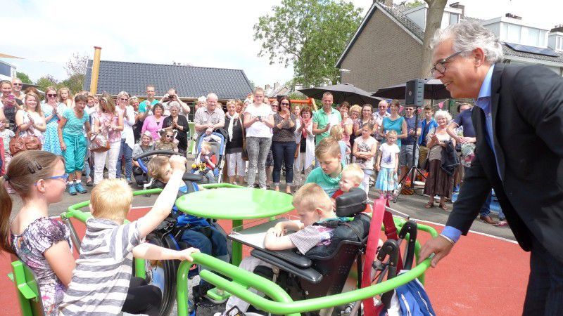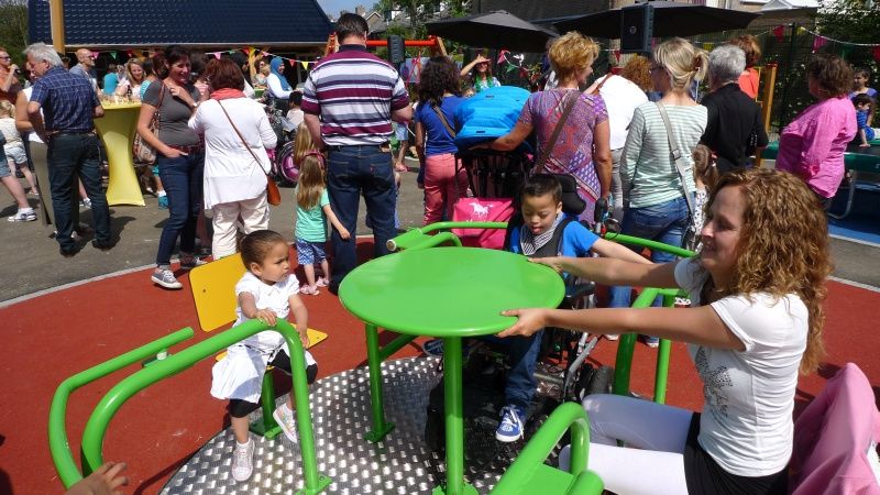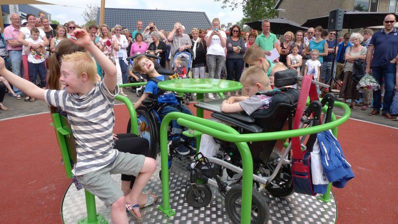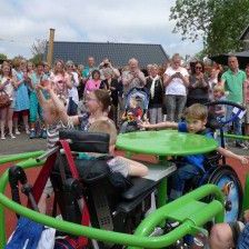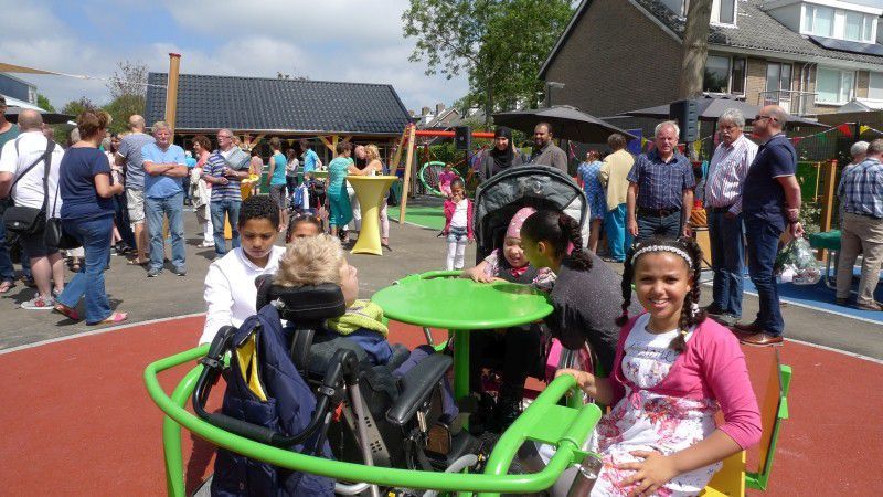 Samen onthulden zij de draaimolen die daarna blij in gebruik werd genomen. In de draaimolen is plaats voor vier kinderen, waarvan twee plekken voor een rolstoel. De feestelijke opening werd door ruim 250 belangstellenden bijgewoond.