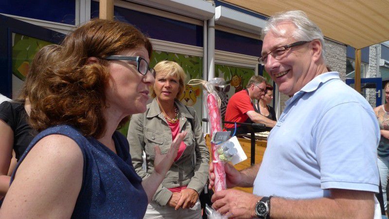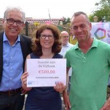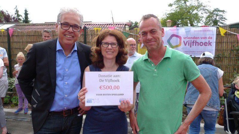 De Vijfhoek (onderdeel van De Waerden) en de Stichting Vrienden van De Vijfhoek kregen naast mooie woorden ook nog cadeaus en donaties voor de kinderen, waaronder een cheque van € 500,- van Stichting Kees voor de aanschaf van nieuw buitenspeelgoed.