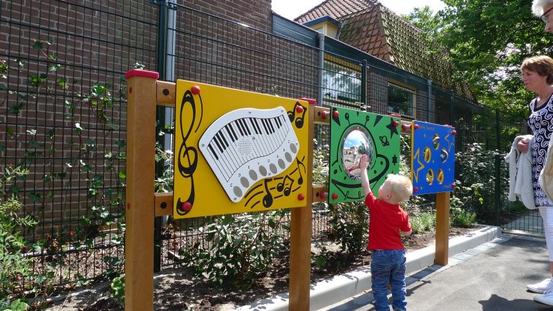 De belevingstuin is nu goed toegankelijk en veilig voor de kinderen van De Vijfhoek. Draaien, schommelen, glijden, wippen, geprikkeld worden, ontspannen; ze kunnen nu net als andere schoolkinderen heerlijk buitenspelen.