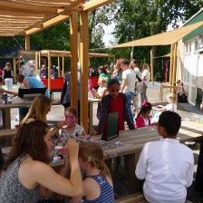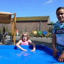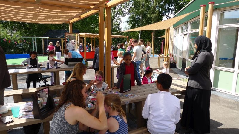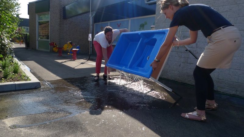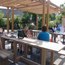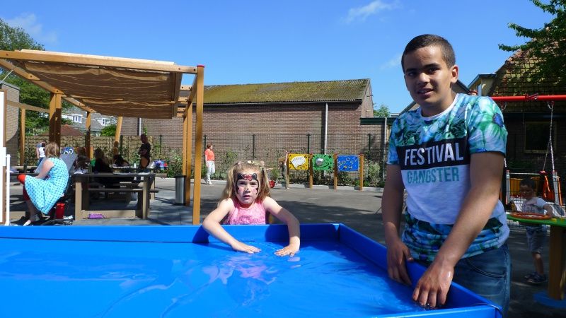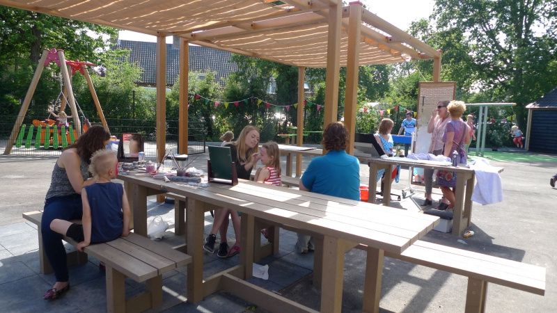 Er zijn schaduwplekken gemaakt en voor de opslag van spelmateriaal zijn er twee mooie schuren gebouwd.