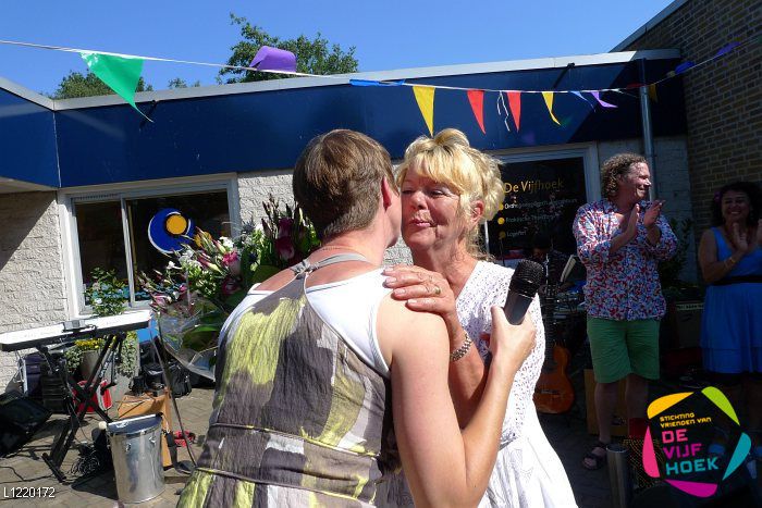 Tijdens haar speech sprak Anke Holtrop (voorzitter van de vriendenstichting) haar waardering uit voor alle mensen in de zorg en in het bijzonder Janny Fernee, die na acht intensieve jaren als bureausecretaresse De Vijfhoek verlaat. Janny was jarenlang onze steun en toeverlaat bij alle praktische zaken rondom De Vijfhoek.